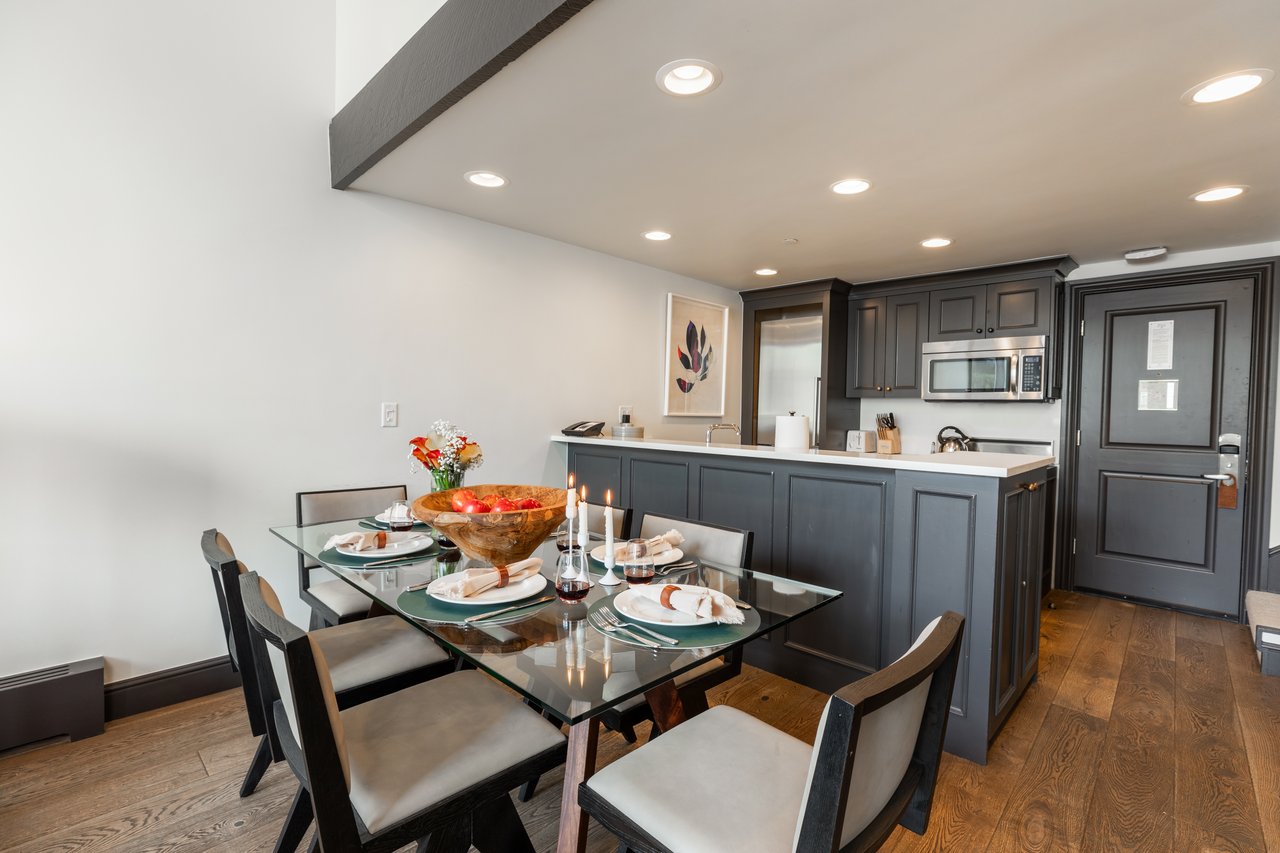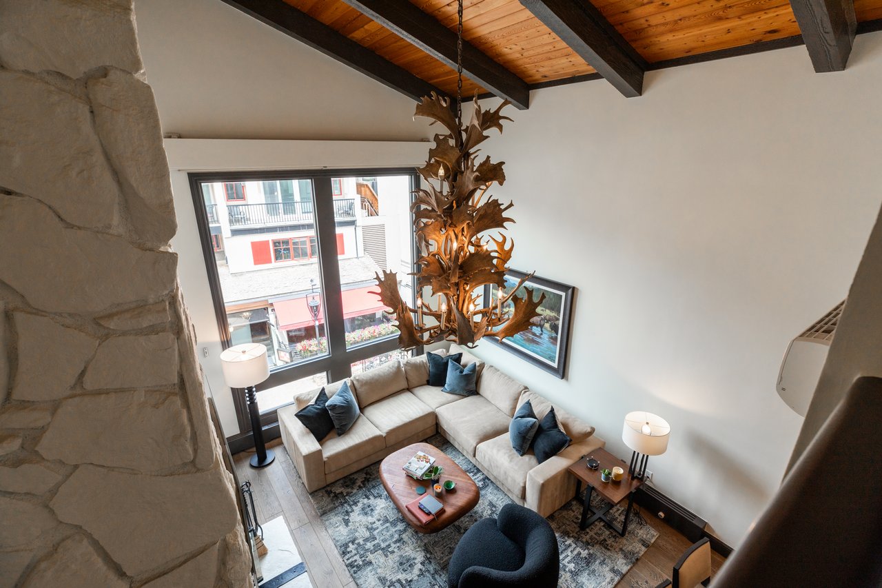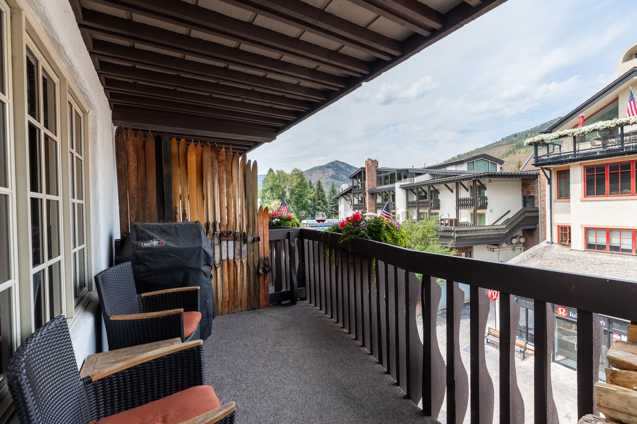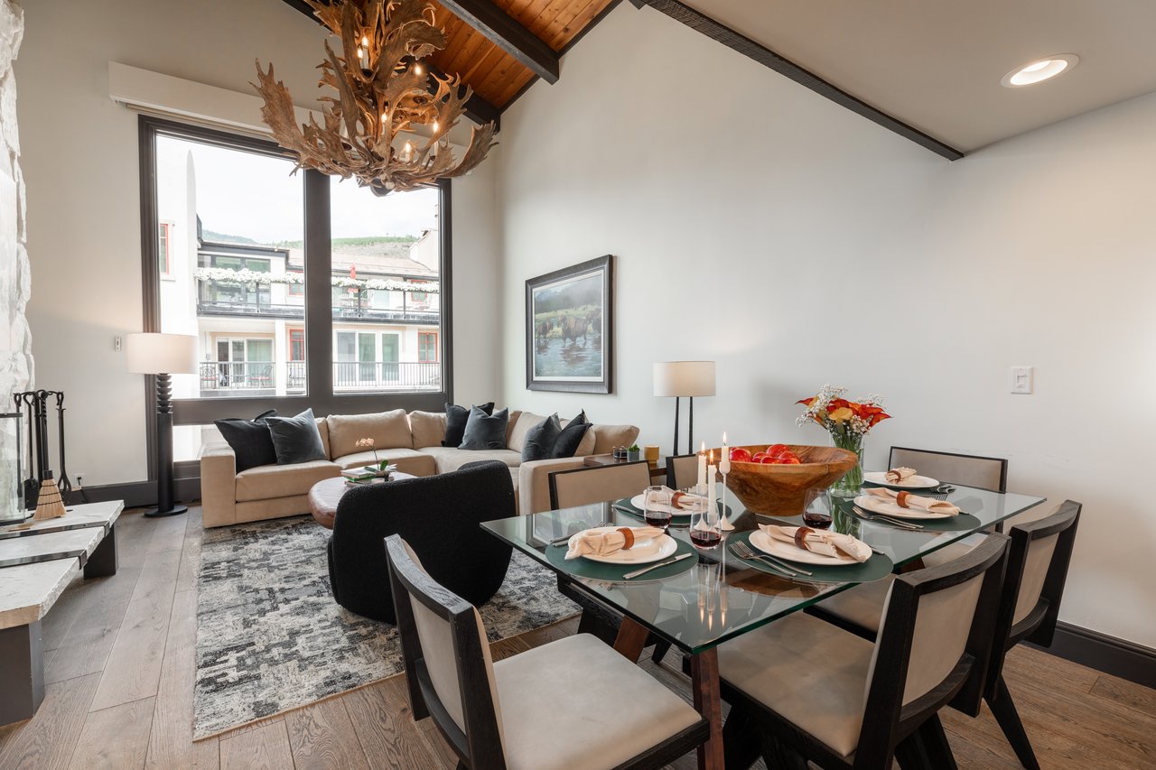 Decked in artful antlers and carbon gray woods, this stylish condominium is an exemplary mountain dwelling that overlooks Vail’s Gore Creek walkway. The condominium enjoys three delightful bedrooms and a full kitchen equipped with an oven, stove, microwave, full fridge and freezer, coffee maker, and dishwasher. Use the spacious dining table to lay out work-from-home materials or enjoy room-service dinners with friends and family. After skiing Vail Mountain, relax with a soak in the bathtub, build a roaring fire, and enjoy some fresh air on the outdoor deck featuring a privacy divider crafted from vintage skis.